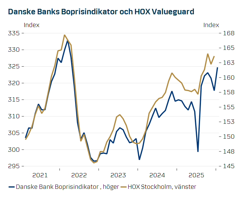 *Danske Banks Boprisindikator avser prisutvecklingen på bostadsrätter inom Stockholms kommun och uppdateras i slutet av varje månad baserat på offentliggjorda slutpriser från bostadssajten Hemnet.